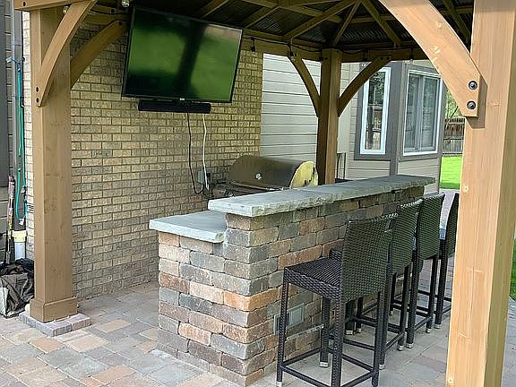 - Exterior features: Wood, Brick