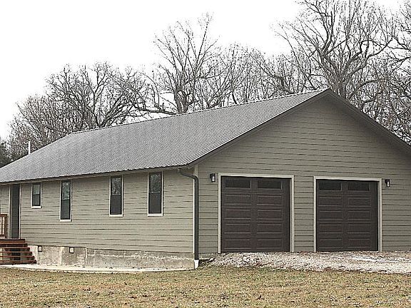 Enjoy the beautiful views from every window of this newly built single level home on 33 fenced acres with oversized two car garage. Sits in a good location between Doniphan and Poplar Bluff. This home boasts a large gourmet kitchen with lots of storage. Both kitchen and bathrooms have custom cabinetry and white granite countertops. Master suite has a walk-in closet and walk-in shower. Large laundry/mudroom that comes with newer washer and dryer. Laminated waterproof flooring, concrete siding, and metal roof for years of worry free maintenance. Garage is large enough to add another bedroom if needed. Property has a good mixture of trees and pasture. There is an old barn with some large rolls of hay left for your animals and a nice shed for extra storage.