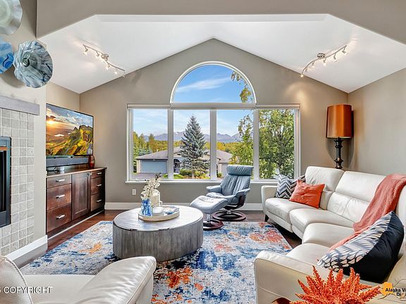 IMMACULATE South Anchorage executive home with sweeping mountain views and high-end finishes throughout. Featuring 3 bedrooms, 2.5 bathrooms, an oversized two-car garage and a Savant Smart Home System with audio, heating and entertainment with built-in speakers in master and dining/ living room. This residence offers care-free luxury living that's hard to find.A large, welcoming tiled entry with ample storage sets the tone, leading up to the gourmet kitchen complete with stainless steel appliances, granite and quartz countertops, built-in gas cooktop, microwave, wine/beverage cooler, a spacious pantry, tiled backsplash, and abundant cabinetry. The living room showcases stunning mountain views and a three-sided tiled gas fireplace, perfect for entertaining or cozy evenings at home. Built-in shelving adds both functionality and charm, doubling as additional storage or a bar area. The formal dining room flows seamlessly onto a private deck, ideal for morning coffee or evening sunsets. Upstairs, the sprawling primary suite easily accommodates a king-sized bed and furnishings, while the spa-like ensuite boasts an enormous walk-in closet, dual vanities, a walk-in shower, and a large, jetted tub. Two additional spacious bedrooms share a beautifully finished full bathroom with granite countertops, offering comfort for family or guests. Welcome home to refined living in one of South Anchorage's most desirable locations.