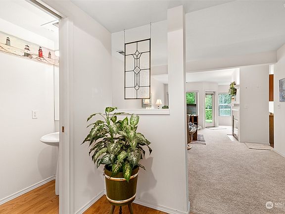 Welcome to The Grove at Harbour Pointe! This well maintained townhome features 2 bedrooms, 2.25 baths with loft area. Hardwood floors, spacious living room with a cozy fireplace, galley kitchen with lots of storage and adjacent dining room. This unit is open and airy with loads of natural light. The primary bedroom includes a private bath with dual sinks and large walk in closet. Attached 1 car garage, driveway and guest parking. Private, covered patio area and lovely views overlooking Harbor Pointe Golf Course. Desirable location, near Picnic Point Beach/Park, Boeing/Paine Airfield, shopping restaurants, and walking trails.