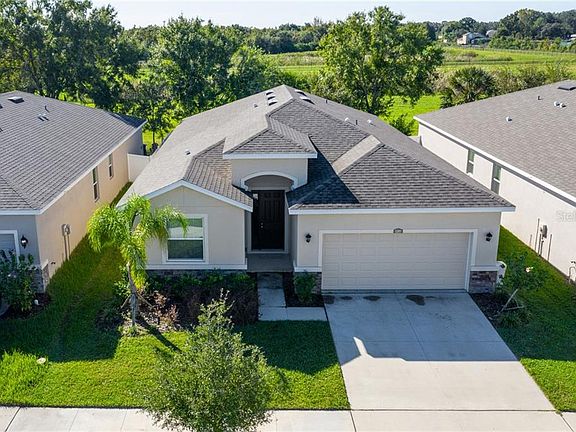 Lovely single-family home built in 2017 on premium lot with backyard view of conservation area. Great opportunity for lease option to purchase available. Move-in ready. Low maintenance. Simply add your personal touch to make this home your own. Located on quiet residential street in Riverview Meadows just off of 301. Clean as a whistle and filled with natural light. Ten-foot ceilings enhance the spacious feel of this open concept home. Upgrades throughout, including fully tiled living area, make this home feel grand yet inviting. Modern kitchen boasts granite counter tops, 36-inch cabinets, walk-in pantry, and large island that overlooks the great room and dining area. Reverse osmosis under sink. Spacious master retreat overlooks the backyard and includes double closets, granite-topped double vanity, separate shower and garden tub. Front two bedrooms and second full bath round out the split planned design. Versatile design plan allows option of either four bedrooms or three bedrooms and a bonus room. Neutral-colored walls throughout. Water softener. A large covered lanai provides the perfect place to relax as the backyard provides plenty of privacy. (The screen on the lania is not pictured.) The backyard looks out unto an open field with no neighbors in the back. Riverview Meadows, a bedroom community of Tampa has easy access to 75 and the Crosstown Expressway. Easily deal with seller directly.