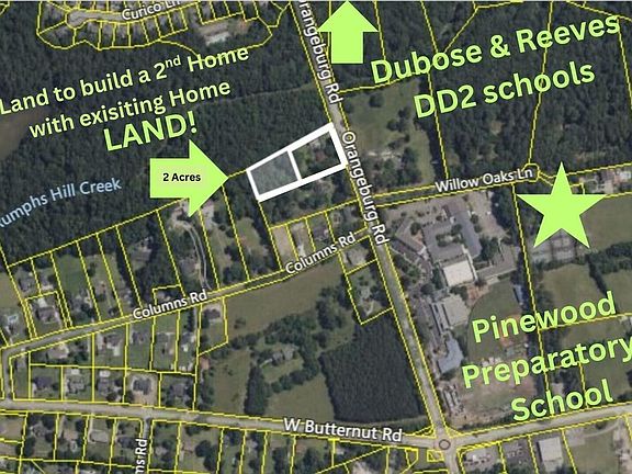Two-Acre Single or Multifamily Opportunity Across from Pinewood Prep!Discover a rare opportunity to own a beautiful one of a kind custom designed contemporary ranch on two acres, directly across from the renowned Pinewood Preparatory School and just minutes from Reeves Elementary and Dubose Middle Schools. This property includes two fantastic parcels with no HOA, offering privacy all the way to Rumphs Hill Creek. The front parcel features the charming residence with a pool and a spacious, landscaped backyard garden. The list price includes the adjacent parcel, which has a separate driveway access if multifamily is desired! Follow FinalOffer for offer alerts on all 3 listings! The centerpiece of this home is the large great room with fireplace &saoring vaulted ceilings, opening through multiple lovely glass sliding doors onto a covered back porch that spans the rear of the house, perfect for indoor-outdoor living. There is also a private studio with a separate entrance off the covered porch.The primary suite and bath is tucked away on one side of the home for privacy. Two additional bedrooms, full bath and laundry room are designed for easy functionality. There is a dedicated flexspace that offers space for hobbies, office, or playroom. Showings: Interior showings will be available on specific estate sale dates. Exterior showings of the BUILDABLE LOT are welcome anytime and is marked with signage. Please note: Do not walk the Occupied residential home's exterior without a scheduled appointment through your Realtor. Key Highlights: Offered at a price that reflects both parcels together Parcels can be purchased together or separately Pool and large backyard garden for relaxation and entertaining Rare location across from top-tier schools