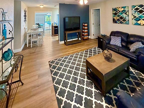 A Winter Haven Chain of Lakes Home with a large screened pool and boathouse for under 500K? Yes! This 3-bedroom, 2-bath home sits on Lake Conine and has received a first-class renovation from roof to floors. The beautiful lakefront home features a brand new roof, 4-ton A/C, and water heater all installed in 2025. The interior living area features new luxury vinyl plank, new fixtures, new doors, new blinds, and new paint throughout. The living room is spacious and includes a beautiful blue feature wall which separates the living room and kitchen. The kitchen features tons of solid wood cabinets, granite countertops, and brand new stainless appliances. It includes both a breakfast area and a picturesque cutout with a stunning view of the pool area and lakefront! The laundry room is also built into the kitchen area and includes a unique custom built porthole window that provides both natural light and views to the Florida room and beyond. The kitchen flows into a large enclosed porch (Florida room) with tons of potential! It can include a second living room space, dining room, and even space for a game room or office area! The Florida room includes additional cabinets and a bar area with a granite countertop. From the Florida room you can access the screened open porch where you can enjoy views of boats cruising the lake, skiers cutting through the water, and bald eagles, ospreys, and herons scooping up fish! The primary bedroom features an en suite bathroom with jetted tub/shower, new fixtures and a large closet. The 2nd bedroom also includes new fixtures and a large closet. The garage was converted into the 3rd bedroom which is oversized with a very large closet and shiplap feature wall. Both bathrooms have been fully renovated with gorgeous subway tile in the showers, ceramic tile floors, new vanities with solid surfaces, and new toilets, fixtures, and exhaust fans. Outside you’ll find new paint, new landscaping, new screen in the pool cage, a brand new pool liner, a new multi-color LED pool light, as well as new light and fan fixtures on the back porch. The carport and large outdoor storage closet have been painted with new exterior doors and new metal panels with new gutters. The home includes a carport and also a second driveway to park an extra vehicle or boat. The boathouse, which includes a roll-up door has been repainted and fitted with new lights, a new side door. It’s approximately 10x20 feet and has tons of room for all your toys! The property includes its own large dock and a concrete slab along the beach area for launching your own boat. Furnishings available for separate purchase.