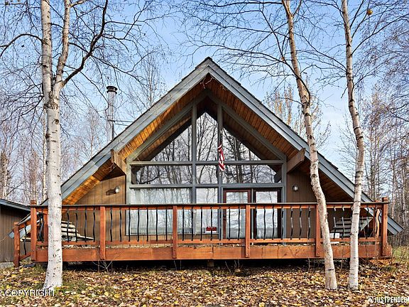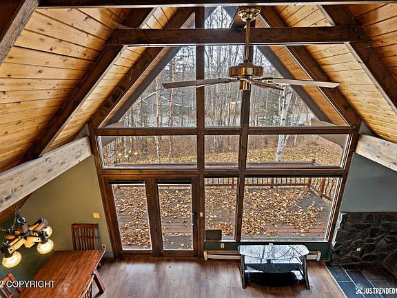 Charming chalet style home! Large windows and open floor plan let in lots of natural light, lofted exposed beams throughout house adds warmth and character. Cute and cozy and just a 40 min commute to Anchorage and under a half hour to Hatcher's Pass. Two car detached garage, natural gas. A little TLC would go a long way in making this one the perfect little cabin!