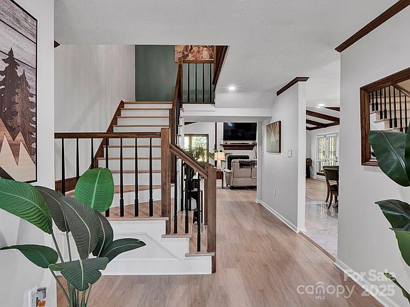Inside, you’ll find a freshly painted interior and new LVP flooring throughout, giving the home a bright, cohesive feel. The spacious kitchen features stainless appliances, an open layout, and plenty of natural light that flows seamlessly into the family room with its inviting fireplace and rustic wooden beams. The primary suite on the main level includes a large walk-in closet and private bath.