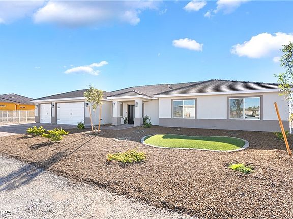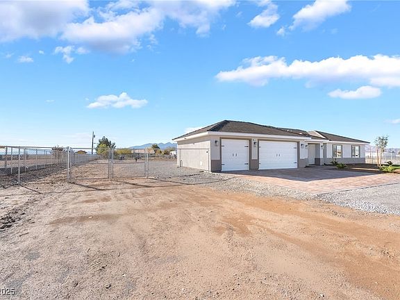 Experience luxury and freedom in this 2024 custom-built home on 1+ acre with NO HOA. This 4 bed, 3 bath, 2,542 sq ft & 3 car garage beauty offers an inviting open floor plan, luxury waterproof flooring, and a cozy living room with a 97" TV. The chef’s kitchen impresses with quartz counters, a large island, and wine fridge—perfect for entertaining. Enjoy a spa-style primary suite, spacious bedrooms, and true independence with a private well, private septic, dog run and fully fenced backyard. Located in one of Pahrump’s most desirable areas near BLM land, with a fire-pit seating area ideal for unforgettable nights under the stars. A rare find combining style, comfort, and new beginnings—move-in ready!