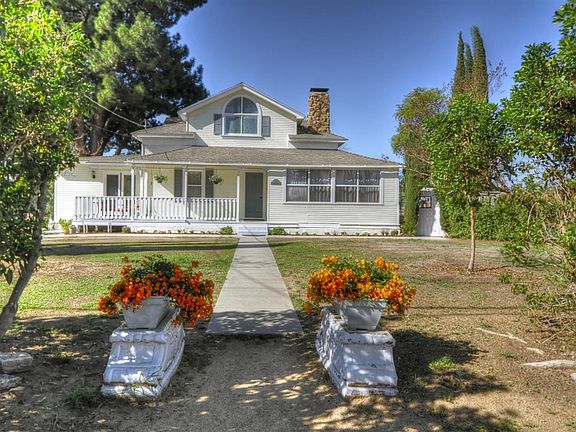 Looking for a unique home with features & details unlike any others? Classic vintage Victorian Farmhouse located near the Grand Tradition Estate & Gardens. Nearly 1/2 acre site overlooks beautiful views of valley below. Enjoy amazing sunsets, wisteria & jasmine blooms & watch hummingbirds from the new wrap around deck. Prevailing breezes keep the home cool in summer, however, this home has also been updated w/AC. Classic period architectural features throughout including dormer windows & a laundry chute! A perfect combination of country and city living. Truly unique unlike any others for those looking for a one of a kind home with a lot of character. Numerous fruit trees including avocado, tangerine, peach, plum & 7 orange, Grape Vines along with flowering trees including Jacarandas & Crepe Myrtle are part of the landscape. Located in back is a detached garage separate from the house. There is also a fence-in yard area next to the garage. Some of the recent improvements include a newly rebuilt wrap around redwood deck, new wood fencing, new roof ridge line on both the house & garage, new carpeting, new hardwood flooring, new sliding glass door, interior paint, exterior text-cote paint, security motion lights & gray water laundry to landscape diverter option. Downtown Fallbrook shops & restaurants are only about 1 mile away yet feel much further from this peaceful, quiet, rural setting. The property awaits the new owner's creativity and landscaping ideas. The large front yard is relatively flat and the back yard is terraced towards the detached garage, citrus trees and the valley. The Farmhouse style home has classic victorian features including smaller upstairs bedrooms with sloped ceilings and dormer windows. Bring your clients with vision and an appreciation for older, classic architecture. This is a diamond in the rough.