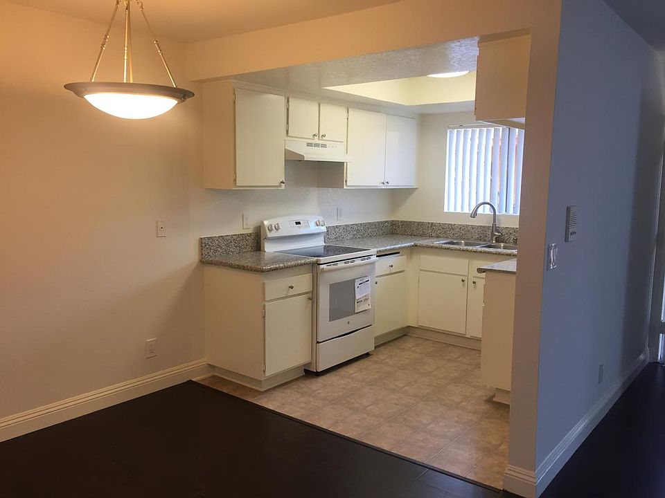 Newly Remodeled! Spacious 2 Bedroom 2 Bath apartment on the 3rd floor, granite kitchen countertops. Hardwood floors all throughout, recessed lights, private balcony. Central A/C and extra storage space. 1 parking spot + a small storage in garage (available upon request) Small dogs & cats (25lbs and under ONLY -NO LOUD PETS ALLOWED) Pet rent $50 month. Elevator + trash shoot in building. (27 unit property) Very peaceful neighborhood, walking distance to major grocery stores, Starbucks, bank, and 5 minutes from freeway.