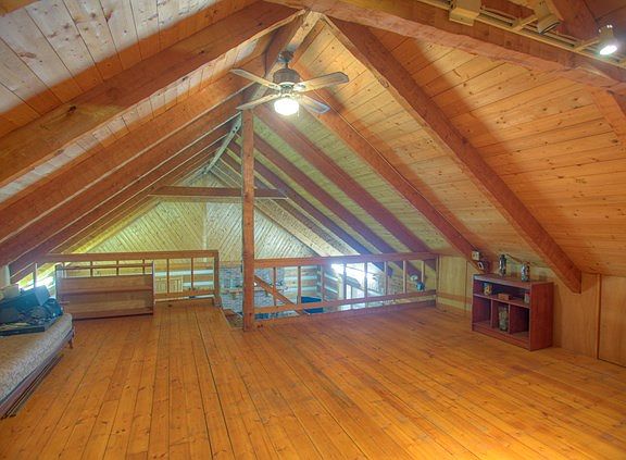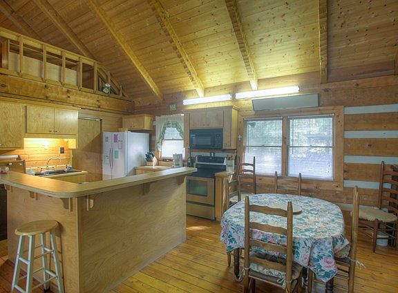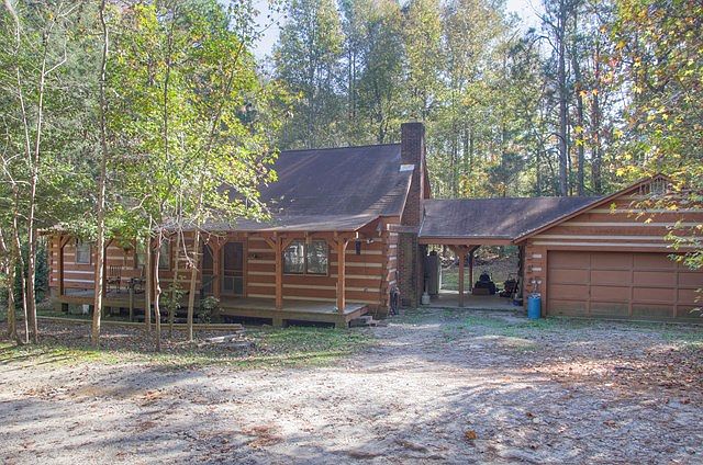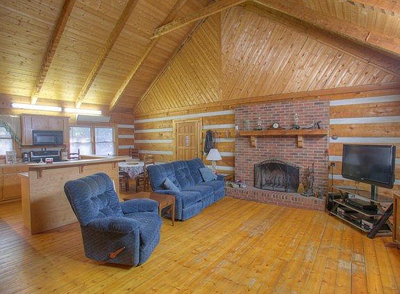 Experience country living at it's finest. This beautiful log home is constructed from heart of Hemlock featuring a vaulted ceiling and exposed timbers. A huge brick fireplace welcomes you into the open floor plan. From the loft you will enjoy the view of the large family area downstairs. It is situated in a peaceful setting with gently rolling hills and a wooded landscape. There is a detached two car garage. There is a sister house on the adjoining property that is also available.