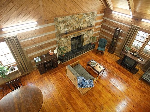 Experience country living at it's finest. This beautiful log home is constructed from heart of Hemlock featuring a vaulted ceiling and exposed timbers. A huge stone fireplace welcomes you into the open floor plan. Atop the staircase you will enjoy the view of the large family area downstairs. It is situated in a peaceful setting with gently rolling hills that give way to a winding creek and wooded landscape. There is a large workshop and a potting shed on the property. There is a sister home on the adjoining property that is also available.