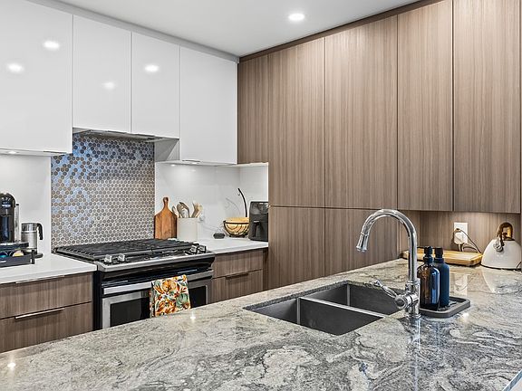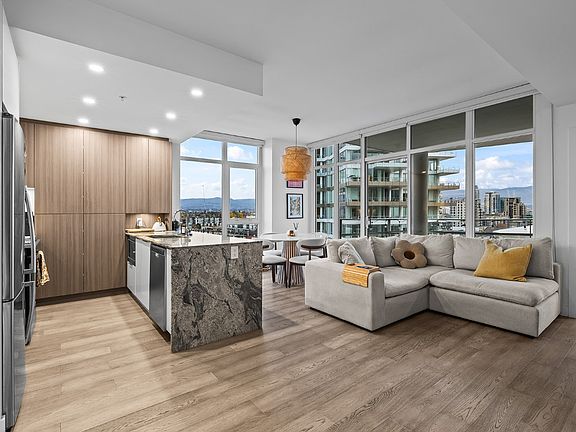 Corner condoBright south-facingFloor-to-ceiling windowsChef-inspired kitchenWaterfall islandStainless-steel appliancesGas range