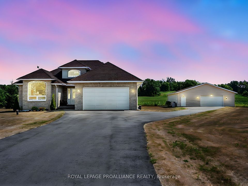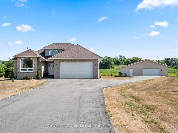 Welcome to this impressive all brick bungalow, in a great country location. The grand foyer has soaring vaulted ceilings and large windows that adorn every turn, boasting a light filled living space and a well designed layout. The chef of the home will love the fully equipped kitchen with stainless steel appliances, crisp white cabinetry and elegant granite counters. The dining nook is framed with a bright bay window and a walk-out, providing the perfect space to enjoy morning coffee with a view. An open-concept living room featuring a wall of windows and a charming fireplace, sets the stage for cozy evenings and sun-filled days. The main floor laundry room offers a folding and prep station, abundant storage cabinets, a laundry tub and direct access to the attached garage for ultimate convenience. The primary suite has a striking arched window, a 3-piece ensuite, and a generous walk-in closet, offering both luxury and comfort. The second bedroom completes the main floor, and is thoughtfully placed at the other end of the home, creating a quiet retreat for family or guests. The basement presents a third bedroom, 4 pc bathroom, storage room, spacious family room and a versatile games room. This prestigious property spans 1 acre of manicured grounds, showcasing vibrant gardens and a dedicated space for a flourishing vegetable garden. An impressive 40 x 50 detached garage ensures ample room for storage, hobbies, tools and recreational equipment. A scenic country drive within minutes to the Village of Grafton, several golf courses, multiple roadside markets and convenient access to the 401.