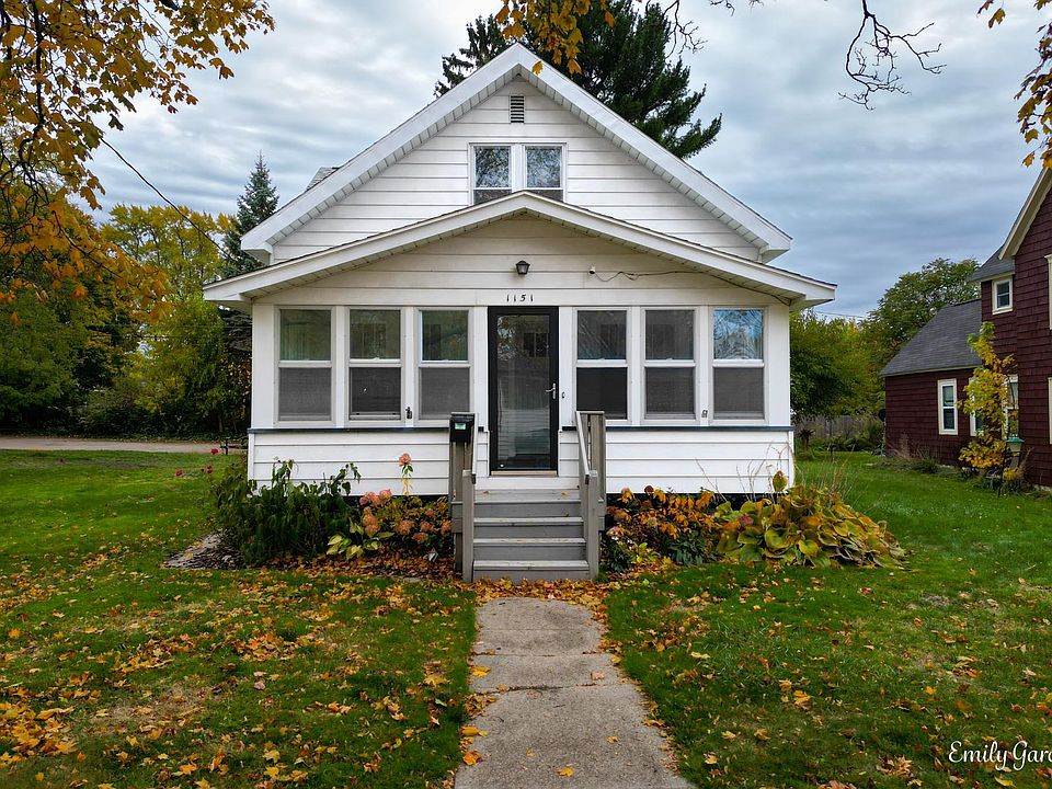 Welcome to this beautifully updated two-story bungalow, just a few blocks from Muskegon Lake and minutes from Lake Michigan's sandy shores. Brimming with charm and character, this home invites you in through a cozy enclosed front porch—the perfect spot to unwind on the porch swing and enjoy quiet evenings or morning coffee. Step inside to find four spacious bedrooms and 1.5 bathrooms, The remodeled kitchen blends style and functionality with modern finishes, while newer flooring and central A/C add everyday convenience. Downstairs, a professionally waterproofed basement provides peace of mind and extra storage, and the rebuilt storage shed adds even more versatility.
