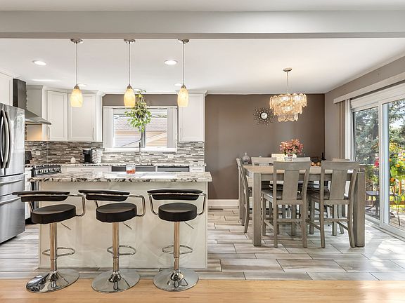 Welcome to this stunning T-Raised Ranch, where style and comfort come together! Approx.. 2184 S.F. Step inside and be greeted by elegant new railings with wrought-iron spindles and a beautifully refinished wood staircase. The open-concept floor plan leads you into the new gourmet kitchen. This dream kitchen features a large granite center island with modern pendant lighting-perfect for entertaining. Enjoy cooking on the 5-burner range with a sleek black stainless steel vent hood, surrounded by custom white cabinetry, granite counters tops, a farmhouse sink with designer fixtures, a stylish tile backsplash, and black stainless steel appliances. Designer tile flooring completes the look, creating a space that is both functional and luxurious. The bright dining area opens to the newer deck-ideal for outdoor dining or relaxing with views of the beautifully landscaped backyard filled with trees and flowers. Professional landscaping also enhances the front and sides of the home. Freshly painted rooms, refinished hardwood floors in the living room, and new laminate flooring in the main-level bedrooms provide a move-in-ready feel. The lower level offers incredible space for everyone, featuring a large family room with a cozy brick fireplace and built-in bookcases. A fourth bedroom, updated full bathroom, and additional areas for dining, play, or office use make this level perfect for guests or in-laws. Storage is never a concern with the oversized garage, complete with built-in cabinets, shelving units, a workbench, and a service door to the yard. Brand-new roof in 2023 Located in the highly desirable School Districts 89 and 87, this home offers easy access to expressways, the Lombard Metra station, Yorktown Mall, shopping, parks, and schools. This is truly a wonderful place to call home!