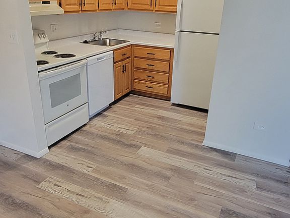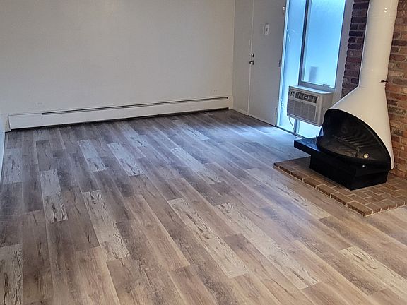 This apartment sits away from the other apartments in the building, It has no apartments next to it or above it. Apartment has new carpet in the bedrooms and hardwood laminate flooring in the living room and dining area and kitchen. has baseboard heating and a nice patio.