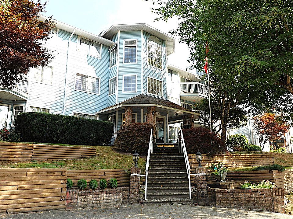 Fraser view at Riverside. Large 1 Bdrm, 1 Bathrm ground level unit with a view of Fraser River. Kitchen with oak cabinets, dining rm, living rm with gas fireplace & sliding door to patio with view of the Fraser River, adult 55+ complex. Unit has its own laundry, storage room which could be used as a den. Pet friendly, guest suite and activity room for parties. Close to shopping, West Coast Express, transportation & across from Brickwood Park & tennis courts. OPEN HOUSE SAT/SUN JAN 17/18 1:00-3:00 pm