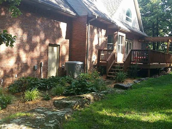 2 story brick home situated on 5 wooded acres just minutes from the heart of Prairie Grove. Private and quite. 4 bedroom, 2 full bathrooms with over the garage TV/game room. Open concept living room, kitchen and breakfast room. Master bedroom has large en-suite bathroom and closet on main level. 3 bedrooms 1 full bathroom with landing are upstairs off the main entrance. Large covered front porch with great views and large back deck with pergola covering a stone patio. Central Vacuum system throughout home as well as an In House Sound system. Extensive landscaping with water feature and drive way lights.