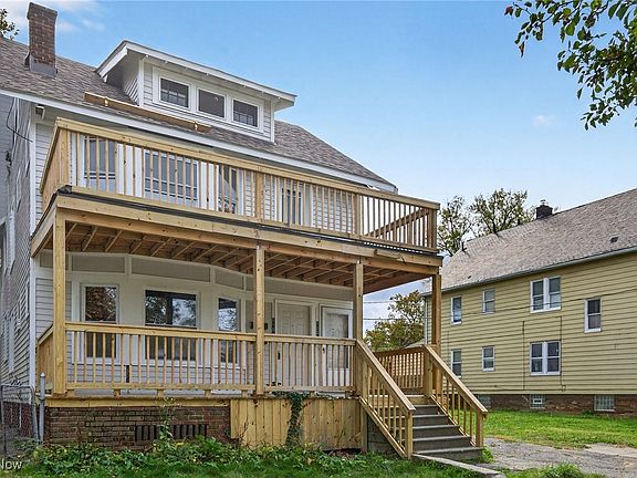 Welcome to 11510-12 Durant . . . a pleasant stroll to Forest Hills Park, Stephanie Tubbs Jones Elementary School, and a short drive to the expressway as well as stores, restaurants and more! This 2-family comes to market with many costly improvements already completed: all new flooring, paint, professionally installed vinyl sided windows, full tear off roof, and new expansive balcony as well as oversized front porch! Full unfinished basement will provide ample storage to tenants and a massive walk up third floor is already plumbed for a full bath should you care to finish it for an oversized owner's suite! Featuring expansive, sun-drenched living and dining rooms with a stately decorative fireplace, each unit offers 2 bedrooms that straddle a full bath that is functional and ready for use. Both kitchens are galley in style and ready for your gas stove and refrigerator. Each unit showcases many new and oversized windows for a bright, cheerful space. Situated with a vacant lot between your neighbor, there is plenty of room for driveway and rear yard parking and the parcel can readily accommodate a future garage if so desired!