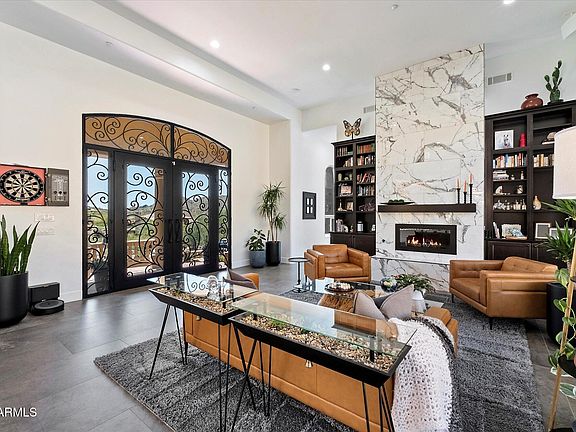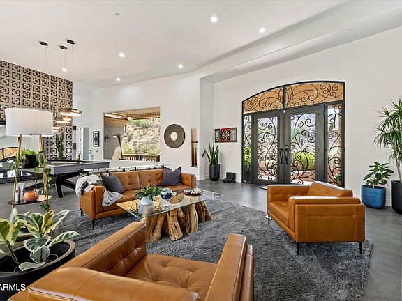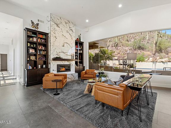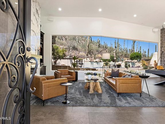 ***PRIVATE, HILLSIDE TOON RIDGE ESTATE with THE BEST MOUNTAIN and CITY VIEWS in ARIZONA*** Nestled against the top of the mountain and surrounded by majestic saguaros and untouched desert beauty, the home is filled with natural light and showcases breathtaking vistas from nearly every room. A complete renovation in 2020-21 transformed the residence with modern luxury and thoughtful design. Highlights include all-new large-format tile flooring, a reimagined gourmet kitchen with Sub-Zero and Wolf appliances, RO faucet, instant hot water tap, dual Sub-Zero wine refrigerators, and a full wet bar with its own RO faucet and beverage fridge. In the family room, an entire wall of glass doors opens wide for seamless indoor-outdoor living, perfectly framing the dramatic desert landscape. The main level offers a serene primary suite with an electric fireplace and spa-inspired steam shower/wet room, plus a private guest suite and additional bedroom. Every bathroom has been fully redesigned with high-end finishes and custom details. The walk-out lower level adds a private bedroom, full bath, and den with its own entrance, ideal for guests, multi-generational living, or a home office. Outside, the resort-style backyard is designed for year-round enjoyment with a heated pool and waterfall, spa, multiple patios, and extensive upgrades including new turf, rock gabion retaining walls, a new pool heater and pump, and a built-in misting system. Move-in ready and timelessly elegant, this estate is the ultimate desert retreat where luxury living meets the raw beauty of the Sonoran Desert.