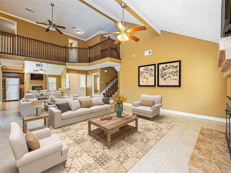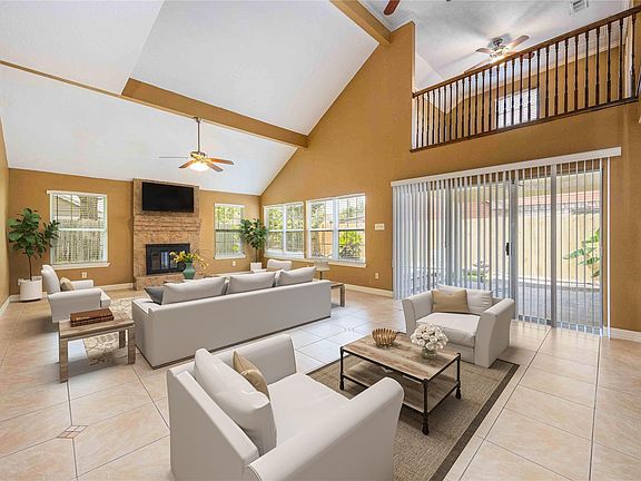 Cozy fireplaceAbundant natural lightTile flooringKitchen with granite countertopsSoaring ceilingsLaundry roomTwo additional bedrooms