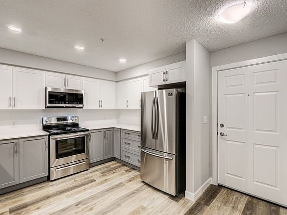 SUITE 108 (main floor) This 5-year-old Suite - (620 sq. ft.) is a one-bedroom, bright unit with abundant natural light. The extra-large kitchen features custom cabinets, quartz countertops, 6 Stainless Steel appliances, undermount sinks, a large peninsula, and custom roller shades. The unit has pot lights throughout, an in-suite full-size washer & dryer, and the unit is outfitted with a luxury finishing package. If you're looking for a comfortable living experience, this apartment suite is the perfect place to call home. ADDITIONAL FEATURES: Extra large balcony, luxury vinyl plank throughout, in-suite storage space. and heat and water are included.