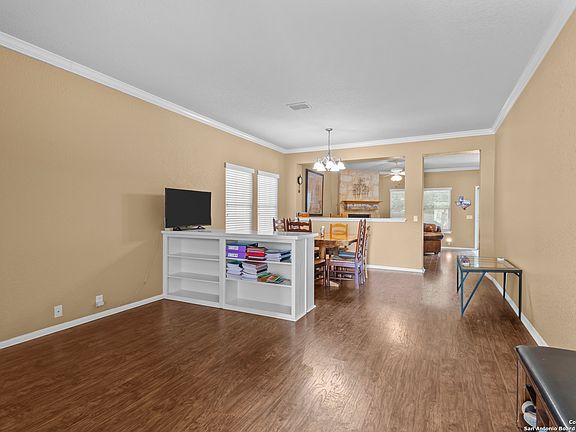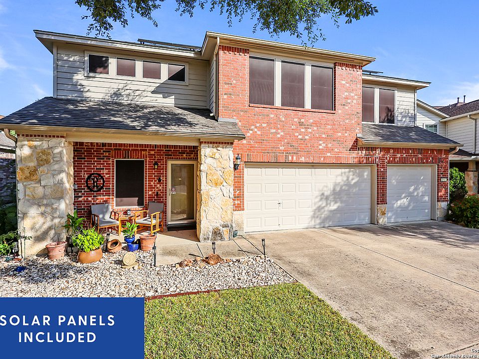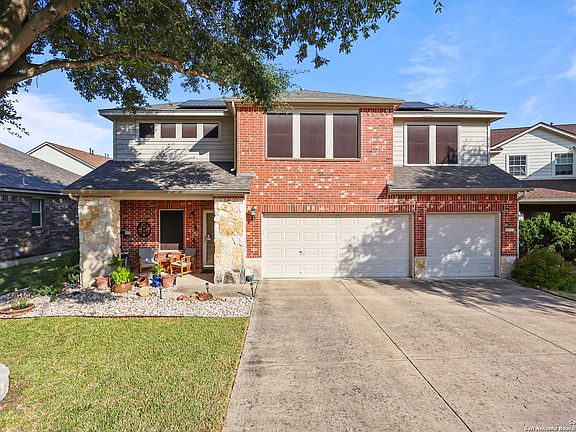 Welcome to 11511 Elijah Stapp, a stunning 4-bedroom, 2.5-bathroom home nestled in a quiet cul-de-sac in San Antonio's desirable 78253. Offering 3,120 sq ft of living space, paid-off solar panels, and a 2024 complete overhaul of the HVAC system with a $37,000 high efficiency unit, this home offers not only style and space but long-term energy savings and eco-conscious living. Enjoy a thoughtfully designed layout featuring connected living and dining areas, a separate living room with a cozy fireplace, and a chef's kitchen complete with a large island, stainless steel appliances, and ample cabinet and counter space. The oversized primary suite boasts a walk-in closet, double vanity, and a separate shower and tub for ultimate relaxation. Upstairs, you'll find a huge loft perfect for a playroom, home office, or second living space. The exterior features a covered front porch, a private covered back patio, and a 3-car garage. The property backs up to a tranquil greenbelt, offering privacy with no rear neighbors. With paid-in-full solar panels, this home provides peace of mind, reduced electric bills, and a smart investment for the future, all in a prime San Antonio location near top schools, shopping, and major commuter routes.