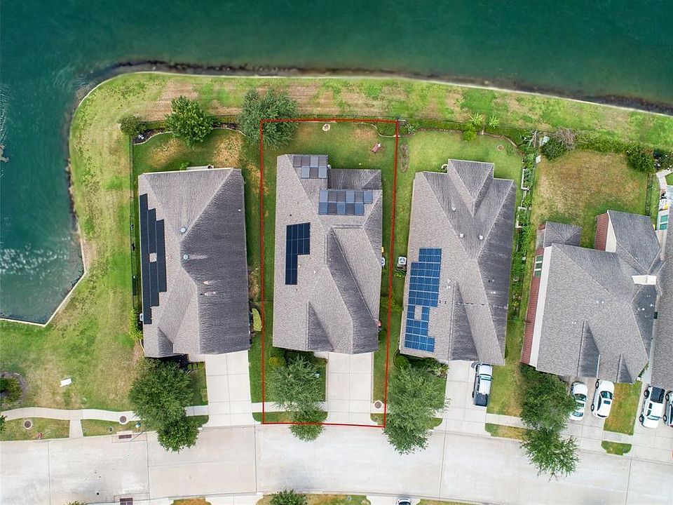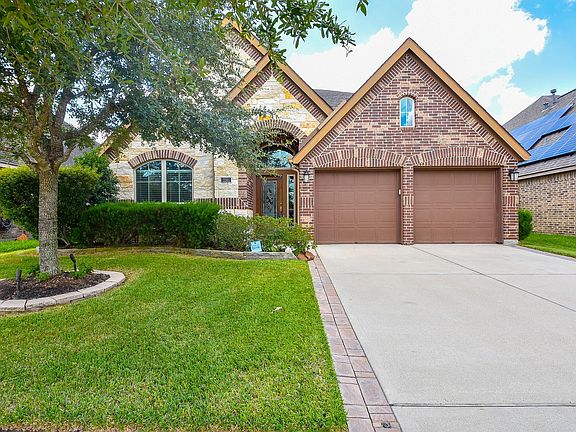 Welcome home to this beautiful and well-loved 1.5 story Perry Home. From the moment you arrive, you’ll notice the curb appeal with brick on all four sides, lush landscaping, a sprinkler system, and soft lighting. Inside, you’ll find 3 to 4 bedrooms, 2.5 baths, a formal dining room, a private study, and open living spaces perfect for everyday life and entertaining. The kitchen features warm wood cabinets, granite countertops, a large island with storage, two pantries. Natural light fills the breakfast nook and living room with peaceful lake views. The primary suite includes wood and tile flooring, dual sinks, a walk-in shower, a soaking tub, and a spacious closet. Upstairs offers a large game room and a media room that can double as a fourth bedroom. Outside, enjoy a covered patio for BBQs or relaxing. Owned Solar panels and a low 2.3 tax rate make this home both comfortable and affordable. New interior painting. Come see this charming home and fall in love.