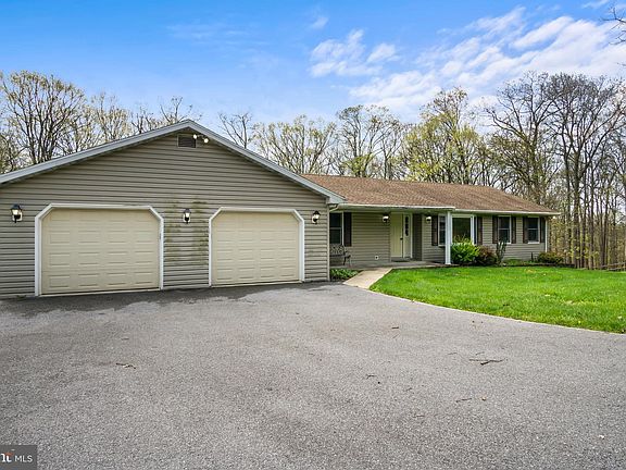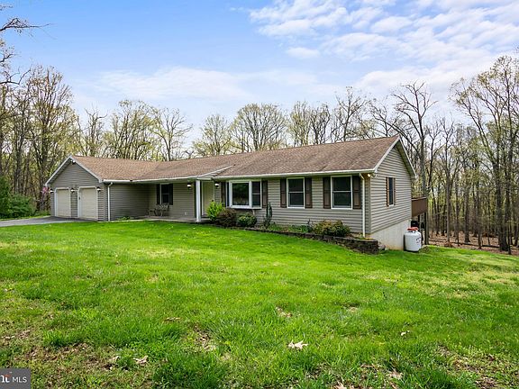 TALK ABOUT PRIVACY AND NATURE...THIS IS YOUR SPOT! OVER 13 ACRES OF BEAUTIFUL WOODS SURROUNDING A SPRAWLING 2200 SQ FT ON ONE LEVEL RANCHER WITH AN OVERSIZED TWO CAR GARAGE AND 2200 SQ FT UNFINISHED BASEMENT THAT WALKS OUT. SO MUCH POTENTIAL! LONG PAVED DRIVEWAY WINDS DOWN AND AROUND TO YOUR PRIVATE, SECLUDED NATURE HAVEN! BRING YOUR PETS... ALOT OF OPPORTUNITIES WITH NO RESTRICTIONS. OUTBUILDINGS INCL SMALL STABLE, LG SHED, FENCING - PERFECT FOR GOATS OR SMALL ANIMALS, CHICKENS, WHATEVER YOU FANCY! SEPARATE SHED, FENCED YARD, SURROUNDED BY PARK-LIKE WOODS , YET OPEN SUNSHINE AROUND THE HOUSE! CHECK OUT THE PICS...HOUSE SHOWS WELL WITH ALL HARD SURFACE FLOORING, PRIMARY BR AND BA ON ONE END AND TWO BR AND A BA ON THE OTHER. CENTRAL IS OPEN LR, DR, KITCHEN AND LARGE FAMILY ROOM WITH 4 DOUBLE DOOR SLIDERS THAT OPEN UP TO A LARGE DECK, LETTING THE OUTSIDE VIEWS IN! FR HAS VAULTED CEILING AND A GAS FIREPLACE! KITCHEN HAS CHERRY CABINETRY WITH BRAND NEW STAINLESS APPLIANCES FROM SPICHERS, BREAKFAST BAR AND OPENS TO THE DINING AREA ALSO WITH BUILT-IN CHERRY CABINETRY AND A DINING SET TO MATCH! MAIN LEVEL LAUNDRY WITH WASHER & DRYER INCL. PROPANE GAS FORCED AIR FURNACE AND A/C, WATER TREATMENT SYSTEM, HWH - BEING SOLD TO SETTLE AN ESTATE - AS-IS. REALTOR SIGN LEFT OF THE DRIVEWAY IS NOT ON SUBJECT PROPERTY. SUBJECT PROPERTY BEGINS FURTHER DOWN THE DRIVEWAY... SEE ATTACHED RT OF WAY INFO.