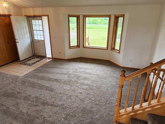 This beautiful, 4 level split, is sitting on 7 tranquil acres. This is a one-owner home, move-in ready, with brand new carpet! Full bathroom with another rough-in full bathroom and built-in fireplace on lower level. Finish the lower level and add another 1,042 SQF. Ability to add 3 more bedrooms! Walk into the vaulted kitchen and living room and look out the glass patio door and beautiful bay window at your property! This acreage is perfect for a hobby farm, horse pasture, pole building, build a mother-in-law home, or simply enjoy the peacefulness of living on acreage! Beautiful front/side/back yard with mature pine trees. 24'x24' attached garage with rear service door. There is a chicken coop and shed included. Mound system is in compliance. Home is being sold AS-IS.