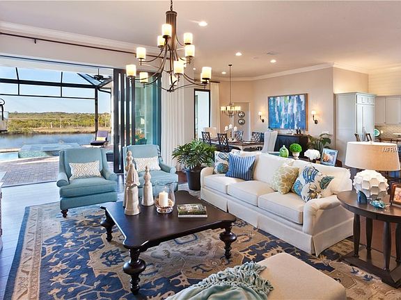 Located in Harbourside at The Islands on the Manatee River is the West Indies influenced model home, The Corindi by John Cannon Homes. The Corindi is sure to impress the buyer looking for the perfect home with coastal influences found at both the interior and exterior. Plenty of soft cream accents, paired with deep rich woods partnered with sapphire blues and seafoam greens will be found throughout this 3 bedroom, 3 bath home. The master suite, great room and bonus room open to the beautiful views of the Manatee river. The Corindi is located just minutes from the new Ft. Hamer bridge that makes amenities and attractions to the south very convenient.