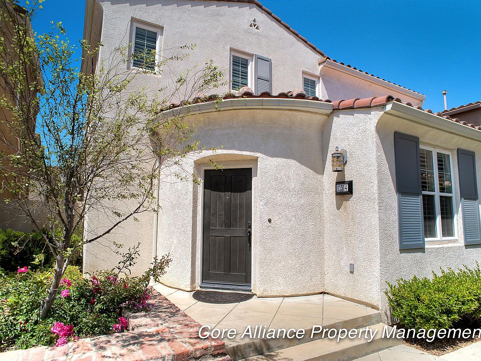 Beautiful detached townhouse located in the prestigious Cortile /Tuscany development in Porter Ranch, with easy access to prime shopping at the new Vineyards with AMC Theater), restaurants, Whole Foods, and Nordstrom's Rack and more! Comfortable floor plan featuring 2 Bedrooms, each with their own baths, plus a downstairs guest bathroom, and open dining and living room, and a kitchen with tons of cabinet space plus a pantry, appliances which include stove, microwave, trash compactor, dishwasher, and refrigerator. Downstairs boasts tile and wood flooring. The master has a large walk-in closet and private master bath with double sinks, shower , and tile floors. 2nd bedroom with its own private bathroom, tile floors, tub & shower. The upstairs has a den, you can make it your personal study or game room for kids. The living room leads into nice big patio. Direct access to the two car garage , built-in cabinets for storage and washer dryer access. Guest parking is conveniently close by, plus community offers pool, spa and manicured grounds. It's a must see!