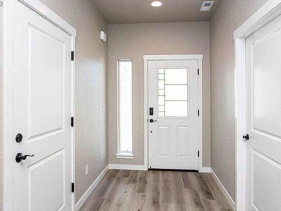 ADA-friendly, you have 3 bedrooms and 2 baths with wide doors and halls in this open floor plan, creating a spacious and welcoming atmosphere. Luxury vinyl flooring is durable and attractive and comes standard throughout the main living area and baths, ideal for durability and it is low maintenance. The island kitchen with soft close beech cabinets, quartz countertops, and full backsplash is both stylish and functional, offering ample storage and counter space for cooking and entertaining. An LED fireplace provides thermostat-controlled heat and a charming ambiance while built-ins are warm and inviting, providing a focal point for the living room and extra storage for books or decorative items. We've prewired your home in each bedroom and the great room and included upgraded CAT-6 and coaxial cables to avoid those ugly wires hanging out. The primary suite with a fully tiled shower offers a spa-like experience in the comfort of your own home. Quartz counters in both baths, a media hub, smart locks, ceiling fan, trash and recycle pull-out bins, and more are already included. Outside you have a fully finished garage, an opener, and a covered patio. You will appreciate the fully landscaped (with sprinkler system) and the fenced yard is perfect for outdoor entertaining and relaxation! These are all standard features in this small Felida neighborhood because you shouldn't have to ask for the obvious. PLEASE USE TEMPORARY NEIGHBORHOOD ENTRANCE AT NW 21st Ave, 4 blocks South of 119th St. This is a construction zone, so you'll need a licensed escort or builder rep to accompany you.