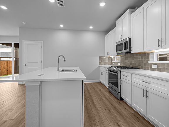 Gorgeous Landon Homes with 4 beds, 3 and a half baths, 1 living room, 1 dining room, game room, 2 car garage and covered back patio! Quartz counter tops in kitchen and all baths, upgraded gourmet appliance package, paint grade soft close cabinets and upgraded railing on stairs, upgraded tile backsplash, large utility room. At the top of the stairs is a study loft area that leads into a large game room. HOA Includes Luxurious Clubhouse with Fitness Center, Resort-Style Pool with Kiddie Splash Area and Cabana's, Event Lawn, Open Park Areas and Playgrounds, Walking Trails, Front Yard Maintenance Included. ENERGY STAR Appliances, Programmable Thermostat, Insulated Interior Corners, Fortiflash Waterproof Membrane around windows, PEX Plumbing, Vinyl Low E Tinted Glass Windows, 16 SEER HVAC System. Come view this single-family home with no adjoining living spaces. Photos are representational only and are not of real property. Available for move in SEPTEMBER 2025.