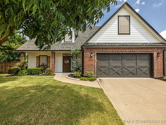 Updated and Light-Filled Home on a quiet cul-de-sac in Jenks Schools! Thoughtfully maintained with recent updates including a 2024 hot water heater, plus 2023 renovations to the Kitchen, flooring, Primary Bathroom, and HVAC system. Downstairs features an open layout with a spacious Family Room centered around a chic gas fireplace, flowing into the stylish Kitchen with stainless steel appliances, granite countertops, large island, pantry, and adjacent Dining Area. The Primary Suite offers direct access to a private pergola-covered sitting area, along with a spa-style en suite featuring dual vanities, deep soaking tub, separate shower, and a walk-in closet. A Half Bath and Utility Room complete the main level. Upstairs includes a large Game Room, three generously sized Bedrooms, and an additional Full Bathroom. Outside, enjoy a fully fenced Backyard with flagstone patio, firepit, and lush landscaping.