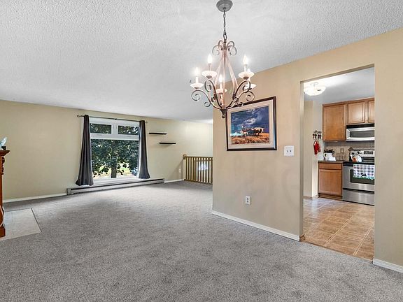 Tucked away in a peaceful, tree-surrounded setting, this 4-bedroom, 3 bath home offers 1,800 square feet of comfortable living space and is move-in ready. The upstairs features a wood burning fireplace, fresh new carpet and updated interior doors, while the functional layout includes a spacious primary suite with a private en-suite bathroom and walk-in closet. A newer roof and low-maintenance vinyl siding provide lasting exterior value. Step outside to an entertainer’s dream with a large covered deck and expansive patio—ideal for hosting BBQs, relaxing evenings, or outdoor gatherings. The generous backyard is framed by mature trees, offering both shade and exceptional privacy. Downstairs, the finished basement includes a warm and welcoming family room, 1/2 bath&laundry combo, direct access to the garage, and a private 4th bedroom—perfect for guests or multi-generational living. Located in the highly desirable Central Valley School District, this home blends comfort & style in a great location.