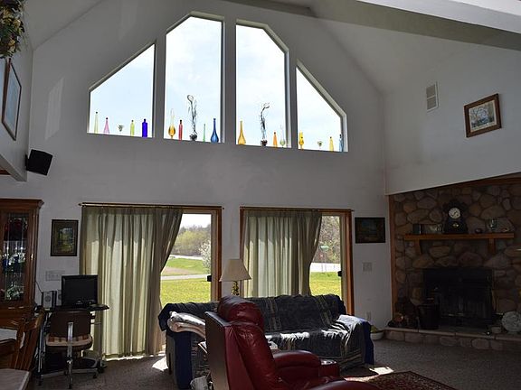 See this adorable 2 bedroom home with open kitchen/dining/living area. The vaulted ceiling extends through the loft area which overlooks the living and dining area. The south wall of the home is mostly windows with 2 patio doors for a future deck or patio. The heat pump was installed in 2013 and a wood burning fireplace helps with the heat bills as well. The refrigerator, range, dishwasher, and stack washer/dryer are included in the sale of the home. The home is on 2 acres. Schedule your showing today!