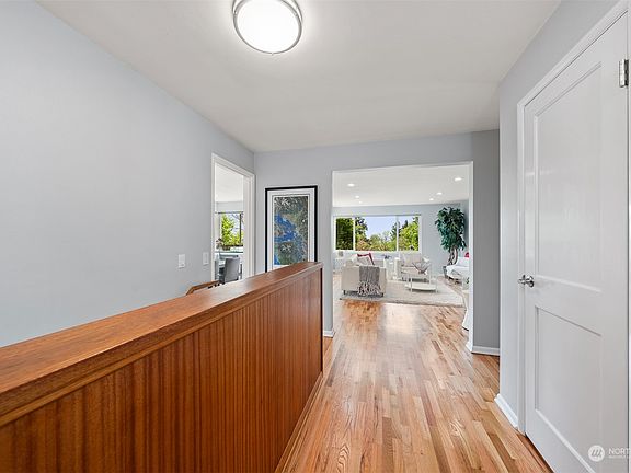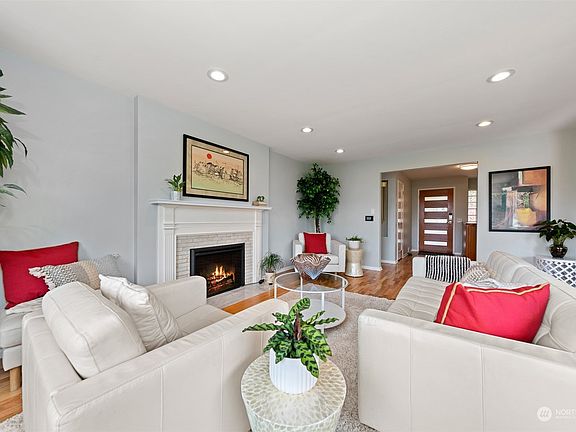 Broadview welcomes you to this beautifully updated mid-century 1950 home. Spacious 5 bed, 2 bath with a lovely garden entrance nestled on a quiet lot. The thoughtfully redesigned kitchen and dining room is the hub of the house opening to the sunny deck. Light & airy living room with partial mountain and sound view. 3 generously sized bedrooms on the main floor with updated bath. Expansive daylight lower level also provides large family room for movie/game night, second kitchen, 2 more bedrooms, office/workshop and second bath. Possible ADU or rental unit. Easy access to the covered patio and private backyard with flex space/outbuilding. More perks – level entry for ease, refinished hardwood floors, new interior paint, & new sewer line.