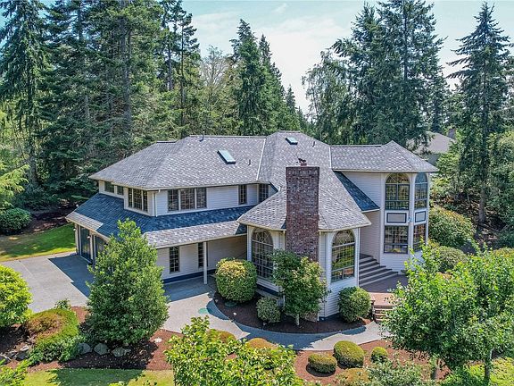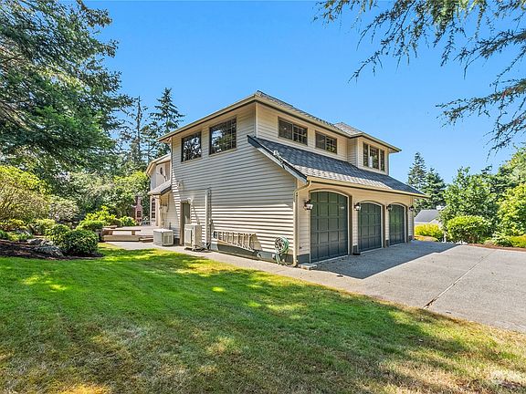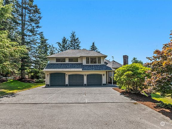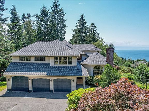 Welcome to an unparalleled living experience where luxury meets serenity with 3,463 SQFT. This magnificent estate offers breathtaking water views of burrows bay and exquisite architectural design atop astounding hilltop. The main level features a front deck and entry, formal living room with fireplace, formal dining room, family room with fireplace, an eat-in granite chef's kitchen, a walk-in pantry, an office/library with built-in shelving, storage and desk with access to the rear deck. Upstairs is the primary suite with water views, ensuite bath with jetted tub, stall shower and walk-in closet, 3-car garage with storage, 4 year old roof, new HVAC and heat pump system. There is also beach access across the main street.