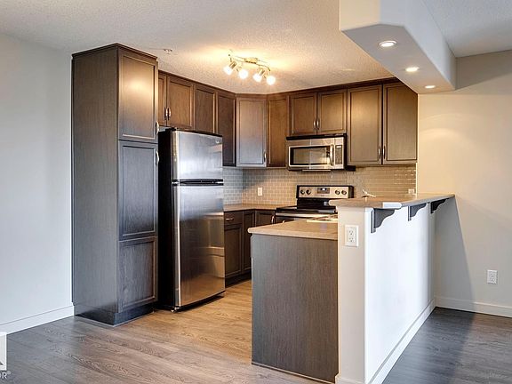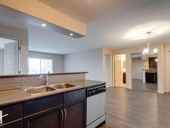Immaculate 2 bed/2 bath condo available in Rutherford Gate! This bright and spacious 943 sqft, corner unit has been meticulously cared for by the original owner. The open concept floor plan features a large living area, spacious kitchen w/large island and raised eating bar, and dining area. The primary bedroom is home to a walk-through closet and 3-pc ensuite, the 2nd bedroom is also quite spacious and is located right beside the additional 4-pc bath. Other features include: In-suite laundry/storage area, covered patio, gleaming laminate floors, s.s. appliances, and titled/underground parking. Very well managed complex w/exercise room, guest suite, and games room. Located steps from shopping, schools, and other amenities. This is a great opportunity in a great south Edmonton location!