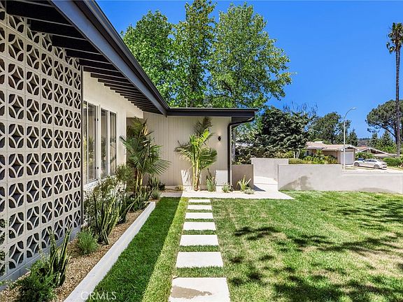 Nestled in the hills above Fryman Canyon, this 3BD/3BA Mid-Century home in Studio City is a timeless architectural gem. Originally designed by David Freedman AIA, the residence has been thoughtfully reimagined with elegant finishes, an airy open layout, and effortless indoor-outdoor flow. Upon entry, you're welcomed into an expansive living room featuring fluted accent walls, a sleek fireplace, and a striking atrium that infuses the space with natural light. The living area connects to the formal dining room, where sliding glass doors in both spaces open to the expansive backyard, perfect for entertaining. Built for a chef, the gourmet kitchen is appointed with high-end Thermador appliances, sparkling countertops, bar seating, and abundant cabinetry. The primary suite serves as a tranquil retreat, complete with a walk-in closet, additional built-ins, and direct access to the backyard. The en-suite bath features dual floating vanities and a luxurious walk-in shower with a custom, built-in bench. Two additional bedrooms, one with an en-suite bath are ideally situated near the primary, each filled with natural light and offering ample storage. Outside, enjoy a lush grass lawn, hillside vistas, and a built-in barbecue, ideal for dining al fresco. Located moments from Fryman Canyon's scenic trails and the highly acclaimed Carpenter Community Charter School, this home offers the perfect balance of comfort, elevated living, and utmost convenience.