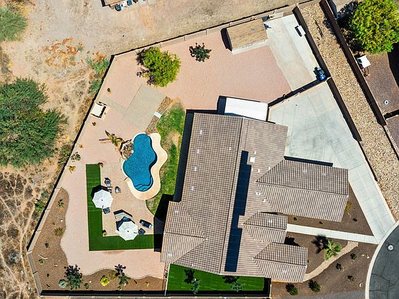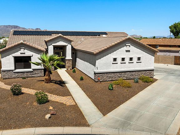 Beautiful 3 Bedroom PLUS Bonus Room Home with 2x6 construction, 3-Car Garage, RV Parking and almost a half an acre lot with Amazing views of Superstition Mountain. Prepare to be impressed by an Open and Spacious interior offering plenty of natural light, high ceilings, arched doorways, neutral tile floor & soft carpet in all the right places. The fabulous kitchen boasts wood cabinetry, SS appliances, large pantry, recessed lighting, & Island with breakfast bar. Primary bedroom includes an ensuite with dual sinks, walk-in closet & private access to the back patio. The oversized backyard with Large covered patio and Incredible Pool makes this truly an oasis designed for the ultimate in relaxation & entertainment! Side yard w/artificial turf-great for a large dog run! TWO Storage Sheds!