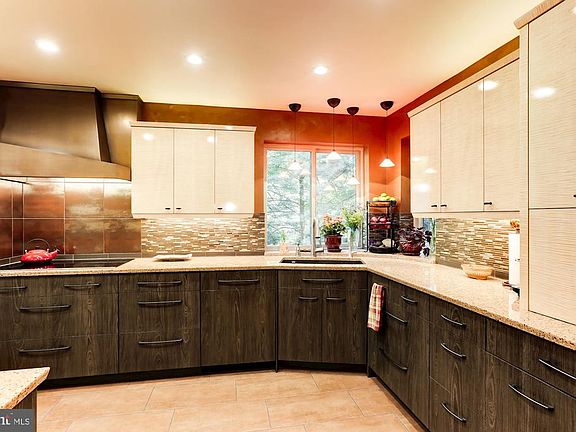 Contemporary gem secluded yet convenient to all of Reston amenities and conveniences. Homeowner has invested over $170K in documented improvements, not including many that are undocumented. New furnace. Many custom upgrades thru-out, too many to mention. Come see this high end kitchen designed by nationally published kitchen and space designer, including but not limited to the finest available "Premier Custom Built" cabinetry with book-matched, figured, English Sycamore veneers and beautifully built-in Leibherr refrigerator with freezer drawers, a state-of-the-art Magnetic Induction cooktop crowned with a copper one-of-a-kind custom hood. Fully loaded with innovative storage and features. Don't miss the concealed electrical systems that allow the gorgeous tile to be uninterrupted or the kitchen library with storage tucked underneath or the Blanco sink with built-in drain board and filtered water faucet. Must be seen to be appreciated. "Form follows Function". One-of-a-kind dramatic powder room with stone, glass, wood, and indirect lighting. Beautifully redesigned and rebuilt stone fireplace features a unique mantle design. Fabulous chandelier in the dining room draws attention to the soaring ceilings. Many new, most are LED, lighting systems thru-out. Custom cabinetry in the library and in the lower level family room. On the lower level, you will find a recreation/family room, office area which could be an additional bedroom, a wine storage closet and rough in plumbing for a full bath. Lots of storage thru-out. New furnace! Decks have been expanded, redesigned and rebuilt in 2014, and refinished this season. Electric, pet-friendly security fence is installed. An over-sized two-car garage provides plenty of space for storage, a workshop, and gardening. Warm and inviting, you will love it.