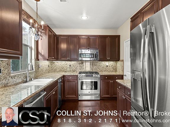 Welcome to the best of Cortile at Tuscany in Porter Ranch! **Coveted Perimeter Plan 4 floor plan offering** Recently built in 2013, this particular townhome has one of the largest backyard/patios in the community! Some of the many features of this fully detached/stand alone townhome include granite countertops, GE Cafe series stainless steel appliances, walk-in pantry, custom hardwood flooring, crown moldings, master suite with walk-in closet, master bath with dual sinks and custom countertops, secondary bedroom with bathroom, and first floor bedroom with French door leading to patio, tankless water heater, third bathroom, and so much more! This gate guarded community has two separate recreation areas which include swimming pools and spas. Walking distance to the new "Vineyards" shopping center and the Porter Ranch Town Center. Just down the hill from the highly acclaimed Porter Ranch Community School (K-8), nearby parks, hiking/biking trails, 118 freeway, adjacent to Porter Ranch's most luxurious Westcliffe community, and just a short drive to shopping and dining at The Village at Westfield in Warner Center.
