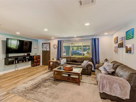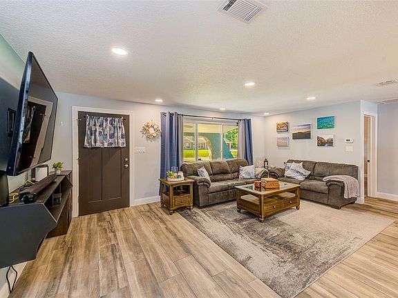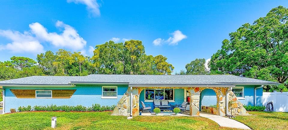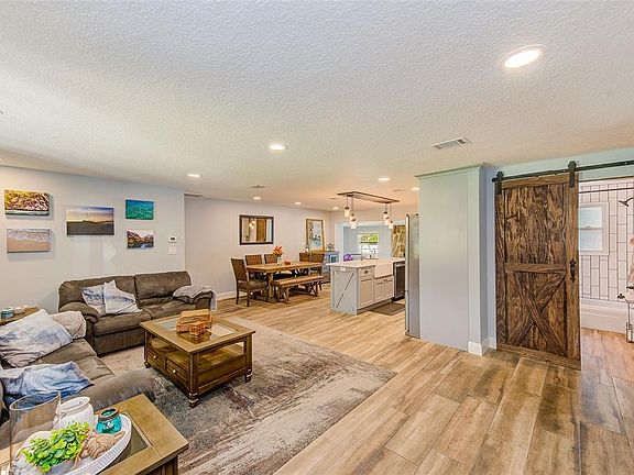 Showcasing Stunning Coastal Farmhouse situated in the heart of Odessa. Meticulously cared for updated block construction home on a spacious 0.29 acre lot without any flood issues! The backyard has abundance of space for family and friends. Fully vinyl fenced backyard, expansive paver patio surrounding a refreshing pool. Dog run or chicken coop, raised garden bed, and brand new 12x12 shed all add to fantastic outdoor living. However, you may want to add your own touch.... outdoor kitchen, huge firepit area, shuffleboard ct. possibilities are endless! Step inside to an open concept fully updated with porcelain tile for durability and elegance. Barn doors on the walk in pantry and guest bath add to the farmhouse feel along with the cozy fireplace to gather around on a chilly winter evening. The kitchen has quartz countertops and soft close solid wood cabintry. Stainless steel appliances and a shiplap island is great for entertaining. Split bedroom layout provides comfort and privacy. New carpet in 2022 in bedrooms, also featuring a 7x13 wardrobe lovers retreat in the primary bedroom! All appliances and washer and dryer are included. New roof, exterior and interior paint 2022. No HOA, a turn key home on a hard to find spacious lot located in Odessa with top rated schools, parks, shopping, and dining.