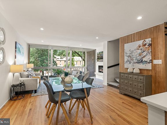 Professional photos coming 07/12. This four-level, fully renovated Charles Goodman original is located in the iconic Hickory Cluster community. While this home has undergone extensive updating, it still maintains classic mid-century modern elements. This is most evident in the restored vertical wood accent wall that runs up all four levels of this home. Other notable features include floor-to-ceiling windows on all four levels, open riser staircases, and three outdoor living spaces including a rooftop patio directly connected to the primary suite. Entering from the attached carport reveals slate tile floors, a coat closet, powder room, and spacious laundry/utility area, ensuring ample storage. The remodeled kitchen on the second level boasts flat paneled wood cabinets, high-end black stainless steel appliances, a large peninsula seating four, and both under-cabinet and toe kick lighting. This level also offers front balcony access, a rear patio, and a large living room with a lime-wash fireplace, perfect for year-round entertaining. The next level features two large bedrooms, one with direct access to a hall bath featuring a two-sink floating vanity, Zellige wall tile, hanging sconces, and a luxurious soak-in tub. The upper-level primary suite impresses with rooftop patio access, a fully updated ensuite bathroom with a two-sink vanity, and a walk-in closet. Located steps from paved walking paths makes for an easy walk to Lake Anne Plaza shops, restaurants, live concerts, and the highly popular Saturday Farmers & Craft Market. Reston Town Center, two Metro stops, and Hidden Creek Country Club are a short drive away. Schedule your showing today!