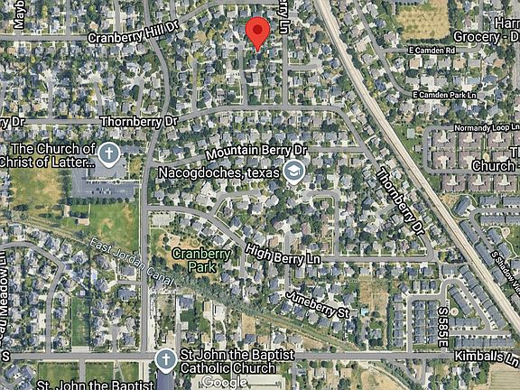 This charming cottage home features 4-5 bedrooms and 3 1/2 baths in 3,058 sq ft. Located on a quiet cul de sac in the highly desired Cranberry Hill neighborhood, this home is walkable to the Skaggs Catholic Campus and is minutes onto I-15. The home welcomes you in the minute you enter and will feature new carpet throughout, newly refinished wood floors and newer paint throughout giving it a fresh update. The open floor plan offers a spacious yet warm main living area, with an office off the front entrance, kitchen, great room, laundry and 1/2 bath. Upstairs has 3 bedrooms and 2 baths, and the basement has 1 bedroom and 1 bath, a living area and an additional space which can be used as a 5th bedroom. Central air, sprinkler system and fully fenced yard.