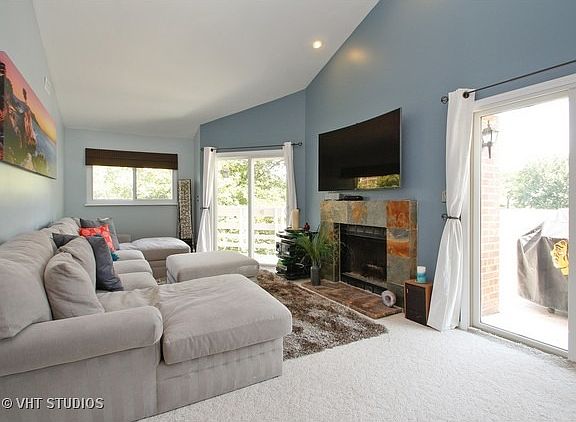 Nicely updated bright 2nd floor end unit with a great view of the park. Dramatic vaulted ceilings. Large eat in kitchen with newer stainless steel appliances, granite and refaced cabinets. Master Bedroom features balcony access and a luxury master bath was cosmetically updated in 2015. 2nd bath totally updated in 2014. Entertain on the wrap-around deck. Laundry room is located right near the kitchen. New sliding glass door and some windows where replaced in 2015. No fuss gas log fireplace. New furnace and A/C in 2013. Stevenson High School.