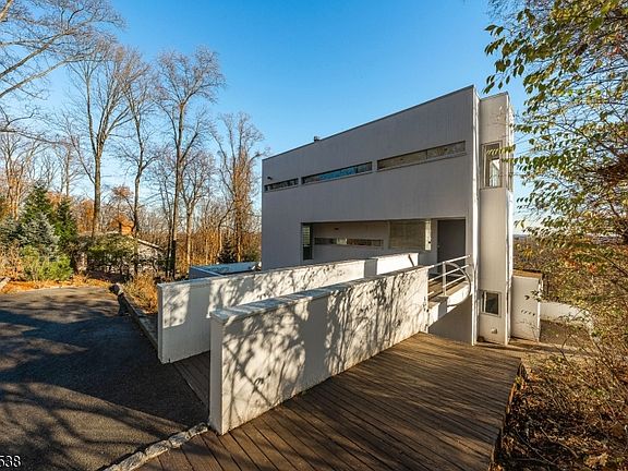 A rare architectural offering, this custom modernist residence channels the iconic work of Gwathmey Siegel with its sculptural geometry, minimalist lines, and sweeping walls of glass. Built in 1978 and brilliantly sited to capture panoramic skyline views, the home is bathed in natural light and wrapped in terraces, creating a seamless connection to the outdoors. A multi-story great room serves as the centerpiece framed by towering windows, a sculptural staircase, and one of 3 wood-burning fireplaces. The open dining and living areas flow onto the deck for year-round entertaining, while the kitchen retains its original vintage charm with a built-in booth, expansive counter space, and track lighting. Upstairs living spaces unfold with elegance: a lofted sitting area within a sun-filled bedroom suite, and a private rooftop office with direct access to the flat roof for outdoor gatherings. The primary suite is its own retreat with fireplace, balcony, and spa-like bathroom. The finished walk-out basement extends the home's versatility with three additional bedrooms, a full bath, and a sprawling family room anchored by another wood-burning fireplace. Throughout the home, signature details pay homage to the era and elevate everyday living. Outdoors, your private resort awaits: a heated in-ground pool, wraparound terrace, multiple decks, balcony, and soaring views. Numerous recent updates complete the exceptional package. This modern masterpiece offers an unmatched opportunity.