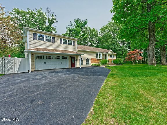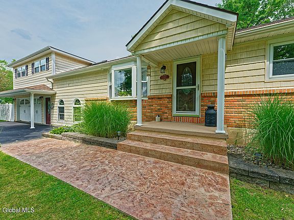This home has been kept impeccably. Large kitchen, open to dining area with gas fireplace, new kitchen cabinets, quartzite tops, stainless steel appliances. 3BR, 2BA, hardwood throughout first floor. New roof, driveway, propane furnace, central air, and hot water heater. Second story offers a spacious master bedroom suite with walk-in closet, master bath and office. Large fenced area with inground pool, pool house, hot tub and shed. Schalmont School District. Great find! This won't last long!