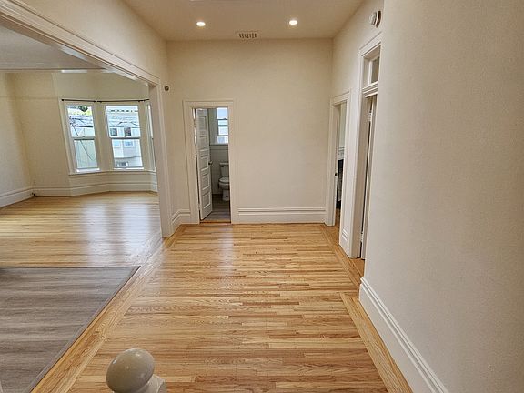 Remodeled, top-corner unit (~1266 sq. ft.) of a detached 4-unit corner Victorian. 97 Walk score. 79 Bike Score. 76 Transit score. 3 beds / 1 bath, Open-concept Kitchen and Living Room. Updated kitchen with new cabinets and quartz counter. New appliances. Updated bathroom. Refinished hardwood floor. Recessed lightings and updated light-fixtures. Newly painted. Natural sunlight coming from 3 sides of the unit w/ 2 additional skylights. High-ceilings throughout. Large foyer, and storage at back of unit. Paved yard area. Tenant to pay PG&E, while garbage and water are paid for by Landlord. Coin-operated washer/dryer in the common area. Cat is allowed. No dogs. 1 garage space parking with interior access. Additional storage space available for additional rental in garage area. Security deposit of 1.5 month rent. Prefer 2 year lease. Minimum of 1 year lease. Prefer prospective tenant to have minimum of 700 mid-FICO credit score. Close to tech shuttles and MUNI (#24 Divisadero, #48 Quintara, J Church line). Tenant to pay PG&E, while garbage and water are paid for by Landlord. No smoking in common areas. Prefer 2 year lease. 1 year lease required. 1 cat allowed. No dogs. 1 car garage space with interior access.